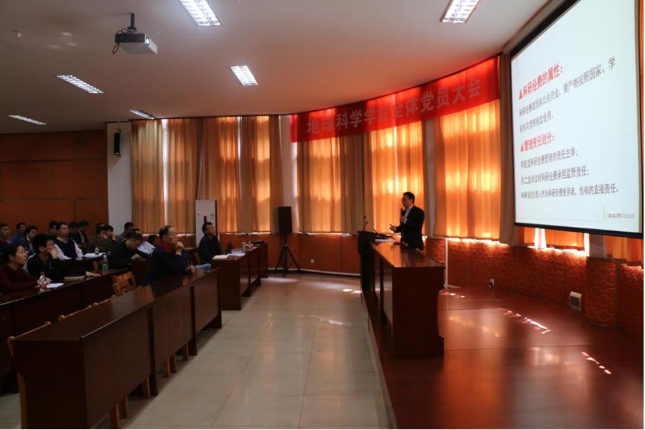 (通讯员 王珩)2017年10月27日上午,bat365在线平台官网登录在东苑会议室召开全体教职工大会,所有在校教职工参加了此次会议。本次会议的主题是加强师德师风建设,严肃科研经费管理,深入推进试点改革。会议由地学院院长刘勇胜主持。